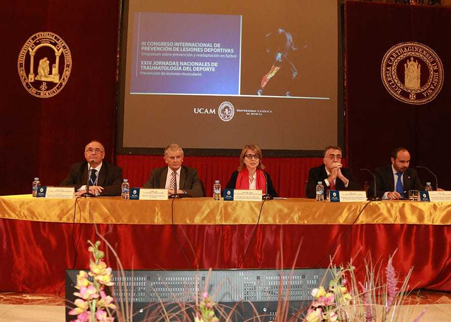 El Templo del Monasterio de los Jerónimos ha sido el escenario de la puesta de largo del ‘III Congreso Internacional de Prevención de Lesiones Deportivas: Simposio sobre prevención y readaptación en fútbol y XXIV Jornadas Nacionales de Traumatología del Deporte: Prevención de lesiones musculares’ que se celebra en la UCAM hasta el próximo sábado. En la inauguración oficial del congreso han participado Estrella Núñez, vicerrectora de Investigación de la universidad; Alonso Gómez López, director general de Deportes de la Región de Murcia; Jordi Ardévol, presidente de la Sociedad Española de Traumatología del Deporte; José Luis Martínez Romero, codirector de la Cátedra de Traumatología del Deporte de la UCAM; y Pedro Emilio Alcaraz, director del Centro de Investigación en Alto Rendimiento Deportivo. Para el doctor Martínez Romero, una de las claves de este congreso es que todos los avances que se consiguen en la medicina deportiva lleguen a la gente y no sólo a los deportistas de élite. “El éxito no sólo consiste en que presentemos novedades o innovaciones científicas. Lo importante es que todo esto llegue a la sociedad y para ello lo ideal es trabajar con las federaciones y los medios de comunicación. Si nuestro trabajo no llega a la gente, no sirve para nada”, ha asegurado.