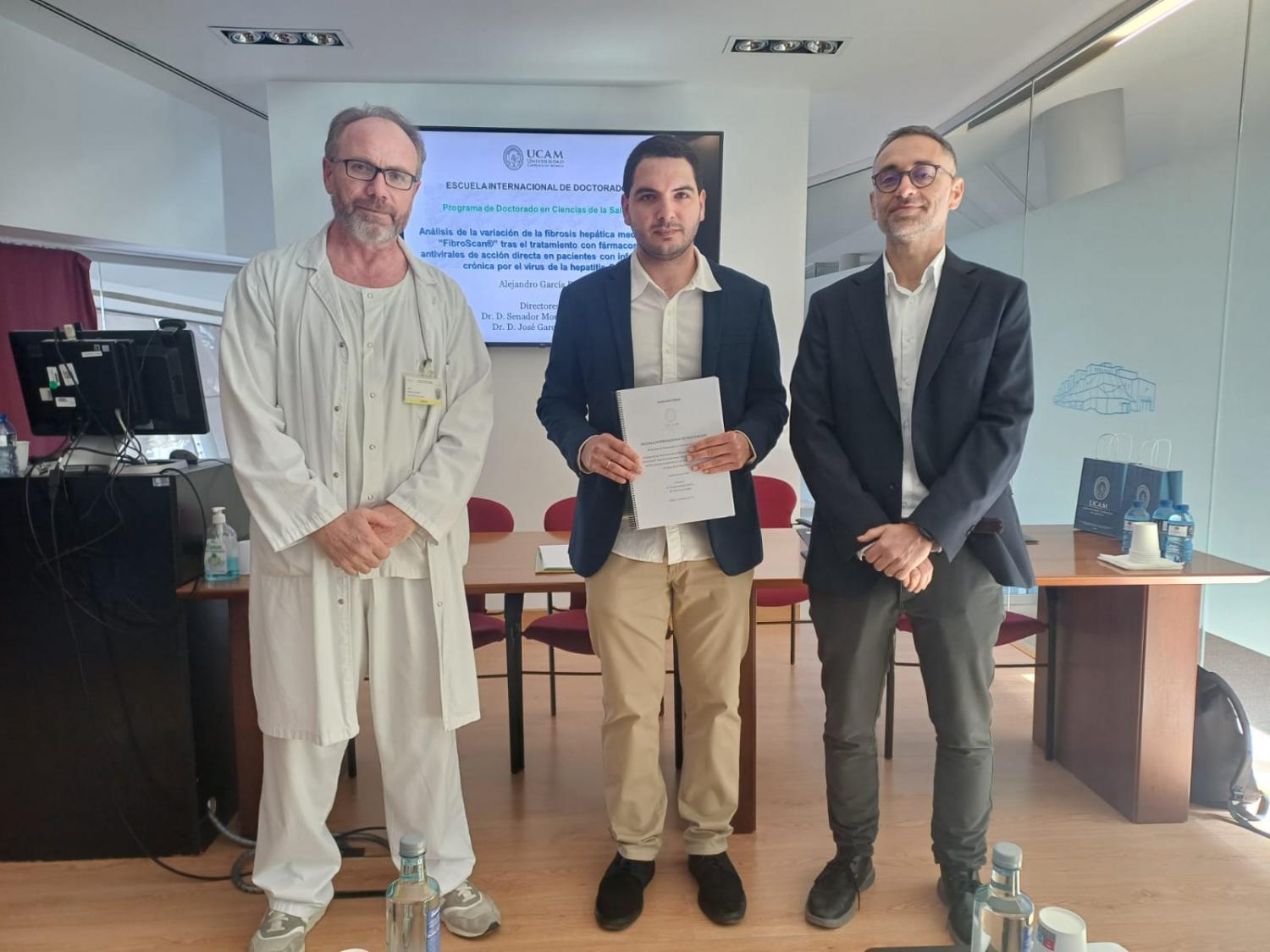 El Hospital General Universitario Santa Lucía ha acogido la defensa de la tesis doctoral del especialista en medicina de familia y comunitaria Alejandro García Ros que se centra en el análisis de la respuesta en el medio plazo de los nuevos tratamientos para la fibrosis hepática en pacientes con Hepatitis C.