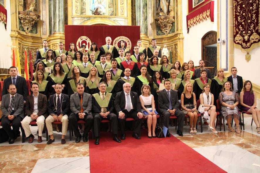 El Presidente de la UCAM, José Luis Mendoza, presidió la ceremonia, acompañado por la Vicerrectora de Investigación y vicedecana de Ciencia y Tecnología de los Alimentos, Estrella Núñez y de los directores de Nutrición Humana y Dietética, José María Cayuela, y Mª. Ángeles Jiménez Olmedo. Cabe destacar que los nuevos nutricionistas, tecnólogos y alumnos del master en Nutrición y Seguridad Alimentaria, y en Nutrición Clínica tuvieron como padrino al Consejero de Presidencia de la Federación Española de Industrias de la Alimentación y Bebidas (FIAB), Jorge Jordana Butticaz de Pozas. Por su parte, la presidenta del Colegio Profesional de Terapeutas Ocupacionales de la Región de Murcia, Paloma de Diego, ejerció como madrina de los flamantes terapeutas ocupacionales. En relación a los Premios Extraordinarios Fin de Carrera, cabe mencionar que correspondieron a Eduvina Martínez Esquiva, de la I Promoción del Grado en Nutrición; Gema Vigueras Bernal, de la V Promoción de la Diplomatura en Terapia Ocupacional; y María Esperanza Castelló Olucha, de la VI Promoción de la Licenciatura en Ciencia y Tecnología de los Alimentos.