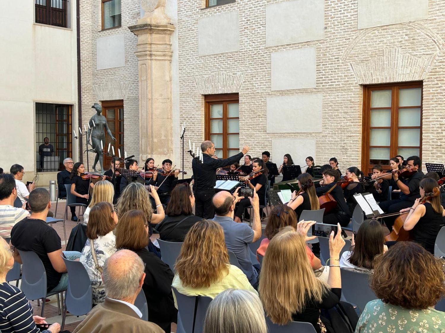 Dirigida por Ángel Luis Carrillo, la Orquesta de Jóvenes de la Universidad Católica de Murcia puso el colofón este pasado fin de semana a su temporada de actuaciones con la interpretación de la obra ‘Pentecostés’. El concierto, celebrado en el Patio del Palacio de San Esteban (Murcia), congregó a un gran número de asistentes que pudieron disfrutar de esta excelente obra que arrancó los aplausos y la ovación de los espectadores.