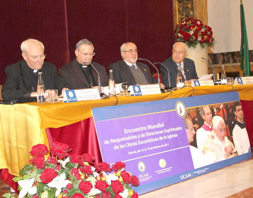 El presidente de la UCAM José Luis Mendoza, mostró su satisfacción por la celebración de este importante evento mundial, preparatorio del 50 Congreso Eucarístico Internacional Dublín 2012, y abogó por impulsar la presencia cristiana en el mundo universitario actual. Por su parte, el obispo de Cartagena, monseñor Lorca Planes, definió durante su intervención la Eucaristía como el quicio y la raíz de la vida cristiana y coincidió con monseñor Marini en la necesidad de mantener una plena comunión con Cristo y con Su Santidad el Papa, Benedicto XVI.