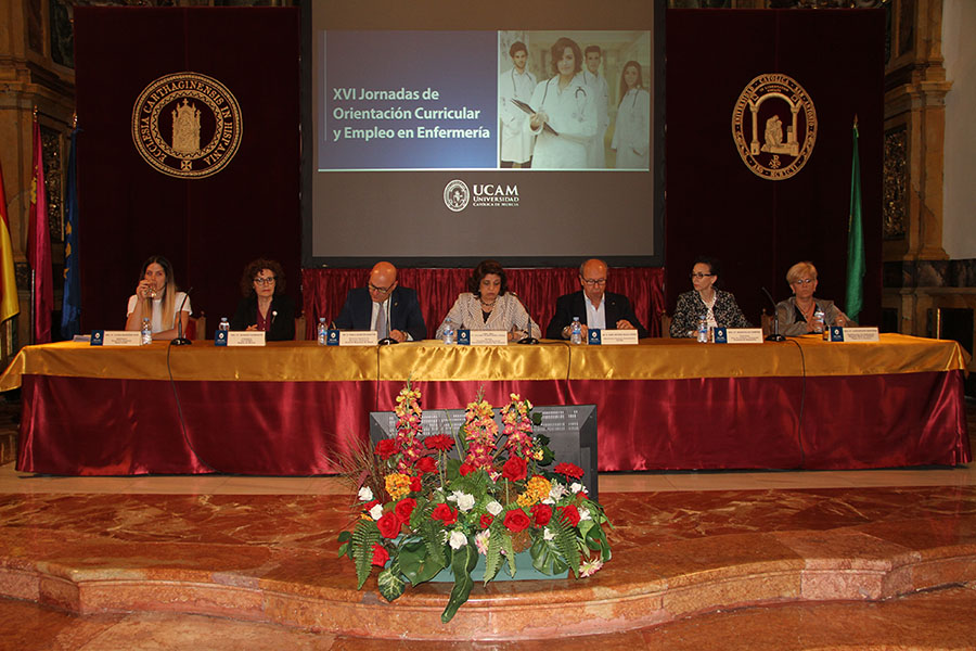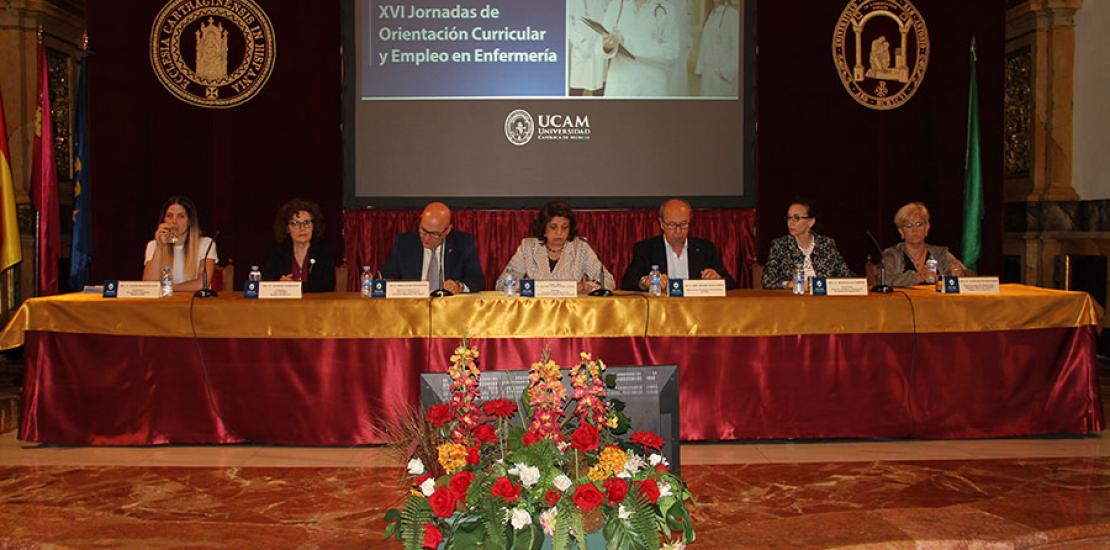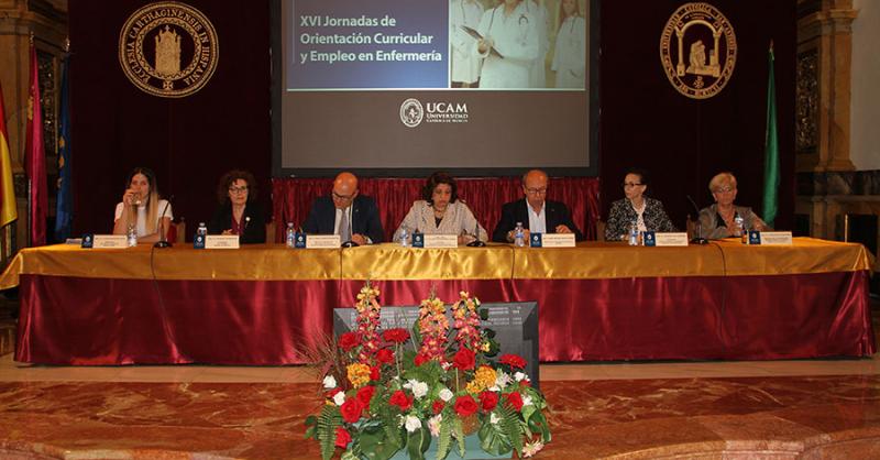 La decana de la Facultad de Enfermería de la UCAM, Paloma Echevarría, ha participado esta tarde en las XVI Jornadas de Orientación Curricular y Empleo para enfermeros
