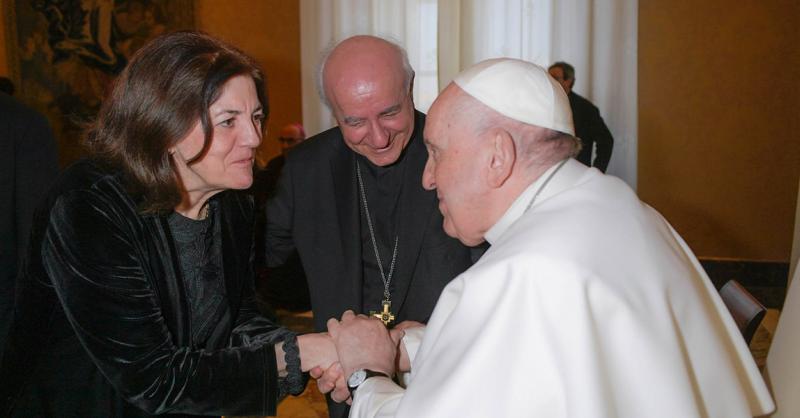 Es la primera reunión de María Dolores García con el Santo Padre tras el fallecimiento de su esposo y fundador de la Universidad Católica de Murcia, José Luis Mendoza, el pasado mes de enero