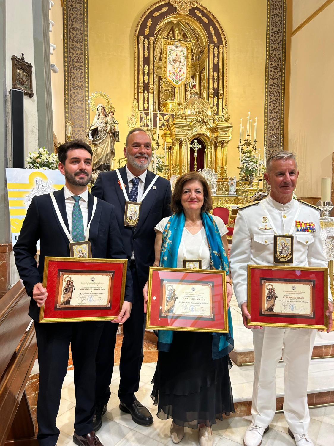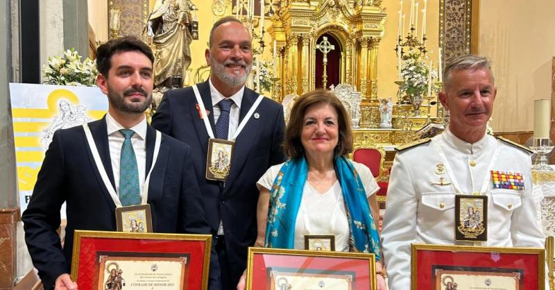 La ceremonia, que ha tenido lugar tras la misa novenaria, ha incluido la bendición del Niño Jesús Carmelita de Praga, la entrega de escapularios a los nuevos hermanos y el nombramiento como Cofrades de Honor del almirante del Arsenal de Cartagena, Alejandro Cuerda, y del historiador Álvaro Hernández. La jornada ha concluido con una serenata en honor a la Virgen del Carmen, como parte del programa de actos recuperado en los últimos años por la Archicofradía.