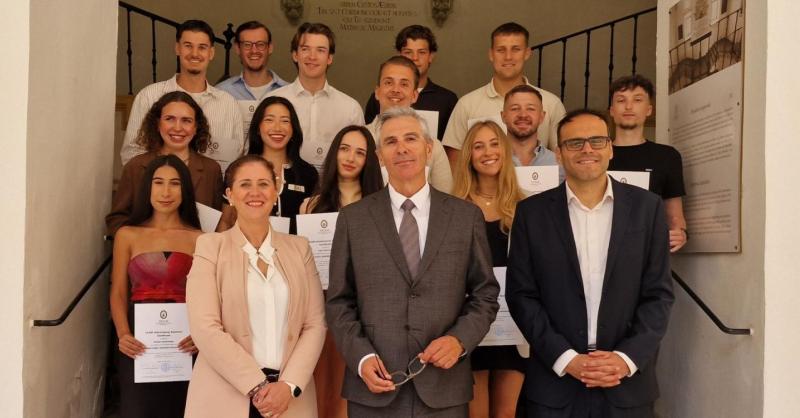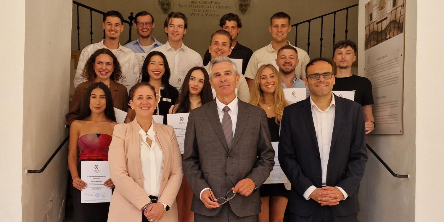 La Universidad Católica de Murcia ha celebrado la ceremonia de graduación de un grupo de estudiantes procedentes de la escuela universitaria alemana Fachhochschule für Oekonomie & Management (FOM), quienes han completado un programa académico intensivo de tres meses en las áreas de marketing y dirección de empresas internacionales. Los estudiantes, de la XI promoción del programa fruto de la colaboración entre ambas instituciones, han cursado cinco módulos formativos impartidos por un claustro mixto compuesto por profesores alemanes y docentes de la UCAM.