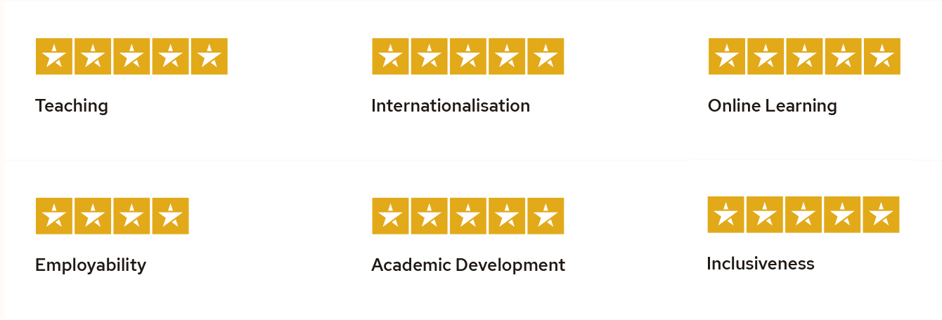 QS Stars Rating permite conocer el desempeño de las universidades evaluándolas en varias categorías, y distingue especialmente a la UCAM por su modelo de enseñanza, la inclusividad de sus campus universitarios, su internacionalización, formación online y compromiso con sus estudiantes; y la valora también con una alta puntuación en empleabilidad. Con la Católica de Murcia, solo 7 universidades españolas cuentan con la máxima calificación de QS.