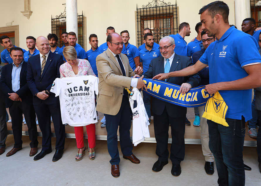El presidente autonómico ha elogiado el esfuerzo de los futbolistas por representar "a todos los murcianos", y el de la UCAM por su trabajo para "fomentar la cultura, la investigación y el deporte"