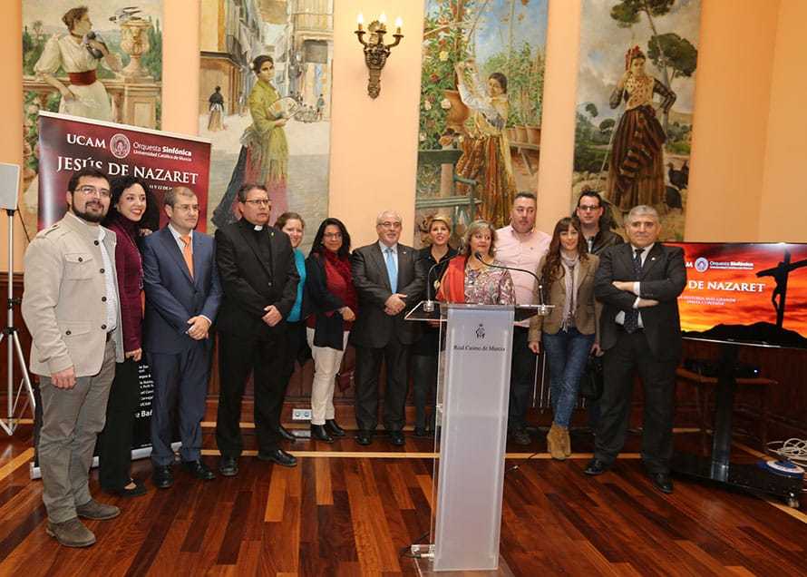 La Sala de Armas del Real Casino de Murcia ha sido el escenario de la presentación del drama sacro ‘Jesús de Nazaret’ que se estrenará el 5 de marzo en el Auditorio Víctor Villegas de Murcia. José Luis Mendoza, presidente de la Universidad Católica San Antonio (UCAM), y Noelia Arroyo, consejera de Cultura y Portavocía de la Región de Murcia, han presentado esta obra a un mes de su estreno. El acto ha contado también con la participación de Roque Baños, ganador de tres premios Goya, mediante un mensaje enviado desde Los Ángeles dando las gracias “a las instituciones que han hecho posible que esta obra vea la luz. Va a ser uno de los eventos más grandes de los que ha habido en Murcia en los últimos años”. El compositor jumillano ha sido el encargado de terminar la obra de Julián Santos que por fin, medio siglo después, verá la luz. Para José Luis Mendoza, nos encontramos a las puertas “de un acontecimiento histórico. Va a ser una obra muy emocionante y especial para los cristianos, que el 5 de marzo ya estaremos preparando la Semana Santa, pero también para los no creyentes por su gran belleza cultural y artística”.