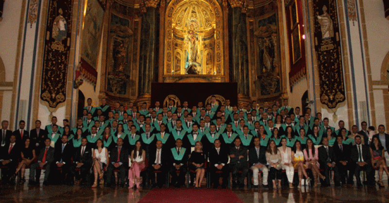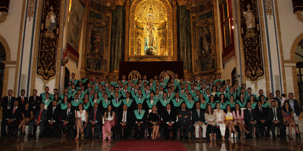 El Templo del Monasterio de Los Jerónimos, sede de la Universidad Católica San Antonio de Murcia ha acogido esta mañana el emotivo acto de Imposición de Becas y Entrega de Diplomas a los alumnos de la II Promoción del Grado en Ciencias de la Actividad Física y del Deporte. Estrella Núñez, vicerrectora de Investigación de la UCAM, ha presidido el acto acompañada por Antonio Sánchez Pato, decano de la Facultad de CAFD. Cabe destacar que Ricardo Leiva, director de Deportes del Comité Olímpico Español, ha sido el padrino de esta promoción.