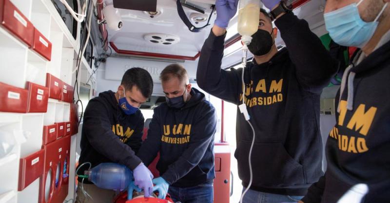 Junto a los dos docentes de la UCAM, el equipo lo integran Asunción Quirante, médico residente de Familia; Rubén Gabarrón y Gustavo López, técnicos de Emergencias Sanitarias de la empresa de transporte sanitario Orthem, y Manuel Luque, enfermero de la ONG World Project.