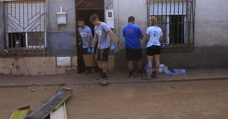 Cerca de 100 voluntarios de la UCAM han ayudado hoy a los damnificados por el intenso temporal de lluvia que afectó a la pedanía murciana la noche del pasado domingo.