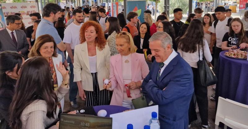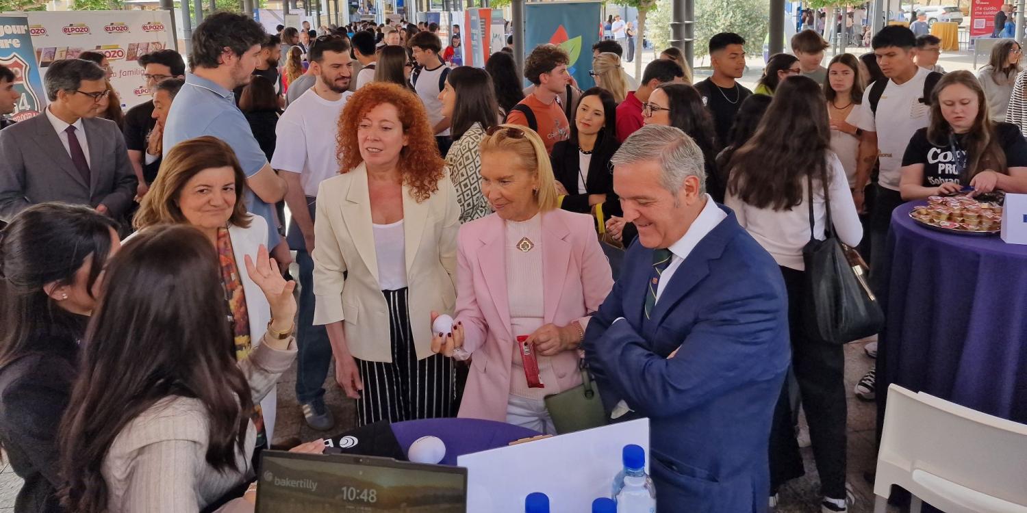 Hoy jueves, en la Feria de Empleo, en la que han participado unas 60 empresas y entidades, los alumnos han interactuado con responsables de Recursos Humanos de firmas como Grupo Fuertes, NTT Data, Garrigues, Hero, Cajamar o McDonald’s, e instituciones públicas como el Ministerio de Hacienda, la Comunidad Autónoma o el Ejército. Han informado sobre sus procesos de selección, permitiendo a los asistentes entregar sus currículums y conocer de primera mano las demandas actuales del mercado.