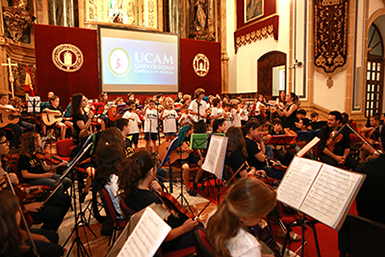 La Red de Orquestas Escolares de la UCAM ofreció ayer el concierto de fin de curso en el Templo de Los Jerónimos, donde 200 niños de todas las especialidades de orquesta (violines primeros y segundos, violas, chelos, contrabajos, guitarras y percusión) tocaron un monográfico de bandas sonoras de Walt Disney. La especialidad de piano presenta hoy, viernes día 2 de junio, un concierto en el Salón de Actos del Colegio María Maroto de Murcia, a las 18:00 horas.