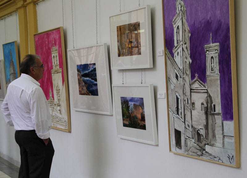 El claustro del Monasterio de Los Jerónimos, sede de La Universidad Católica San Antonio de Murcia, acoge durante estos días la `Exposición homenaje a la Región de Murcia´, una muestra artística multidisciplinar que combina una acertada selección de lienzos y fotografías a cargo del pintor Juan Antonio Marín, y del fotógrafo José Alberto Moreno Moñino, y que permite al espectador recorrer y contemplar, desde sorprendentes e inesperadas perspectivas, los rincones más emblemáticos de la Región de Murcia.