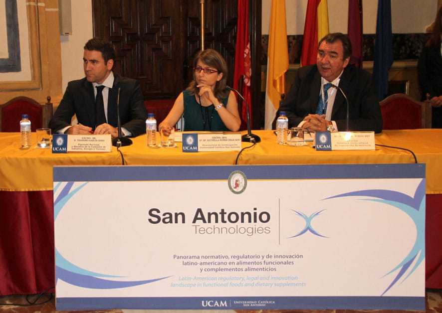 La Universidad Católica San Antonio de Murcia (UCAM), inauguró el pasado 25 de junio el Curso de Verano ‘Panorama normativo, regulatorio y de innovación latino-americano en alimentos funcionales y complementos alimenticios’. El simposio estuvo organizado por la empresa de base tecnológica de la Universidad, San Antonio Tecnologies. Durante el acto inaugural intervinieron el diputado Nacional y miembro de la Comisión de Industria, Energía y Turismo, del Congreso de los Diputados, Teodoro García; la vicerrectora de Investigación de la Universidad Católica de Murcia, Estrella Núñez; y el director del Instituto Universitario de Innovación Alimentaria de la UCAM, Javier Morán.