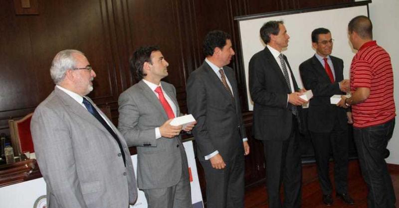 Asimismo, durante el acto, Francisco Cano, director de ventas de Huawei Terminales de España, junto al resto de representantes de las diferentes partes implicadas, procedió a la entrega de cinco terminales móviles Huawei U8650 versión NFC a cinco estudiantes del Grado de Informática de la Universidad, como acto representativo de los 50 que se entregarán finalmente.