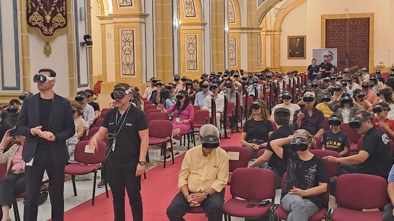 Han sido 105 personas, todas con gafas de realidad virtual, las que han participado en una clase inmersiva de RCP realizada en la Universidad Católica de Murcia. Se trata de un hecho sin precedentes, lo que ha permitido batir el Récord Guinness de participantes en una clase de realidad virtual en un mismo espacio (el Templo del Monasterio de Los Jerónimos), en el que se ha mostrado el potencial de esta tecnología como herramienta de aprendizaje.