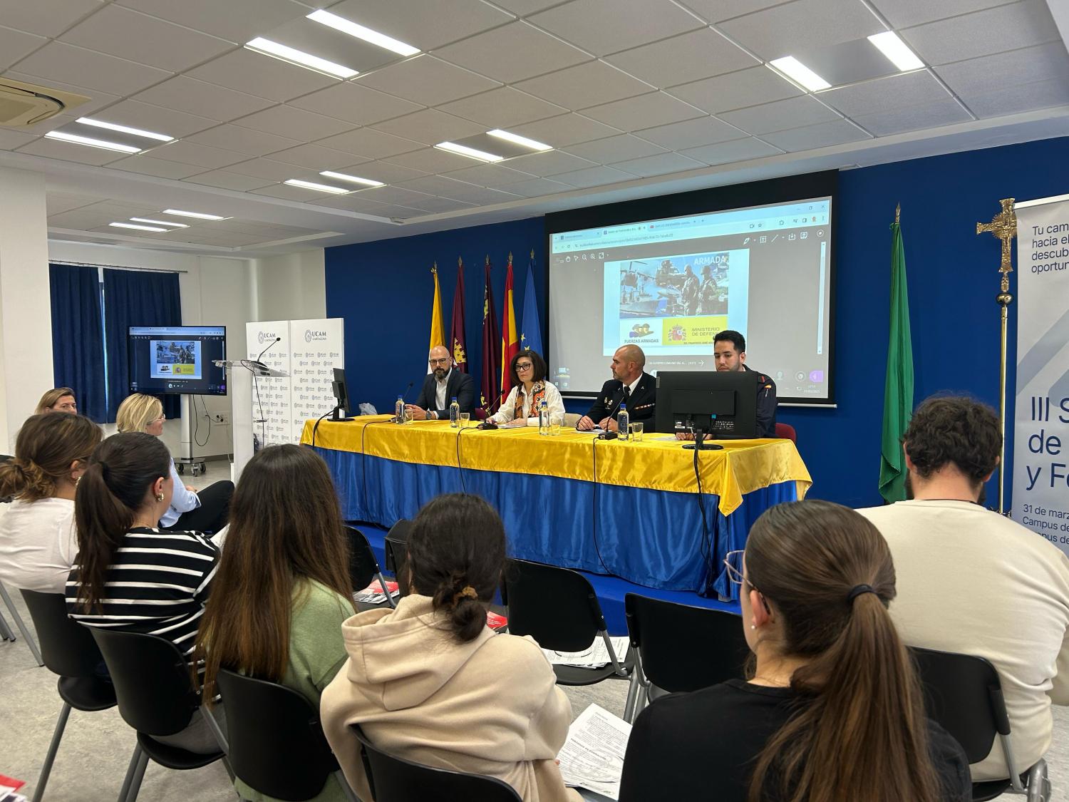 La jornada inaugural en el Campus de Los Dolores de la III Semana de Formación y Empleo ha reunido a profesionales de la Fuerza Naval de Guerra Especial y del Grupo Ribera Salud para compartir las claves de trabajo en estos ámbitos