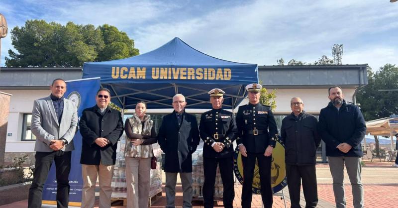 El acto de entrega de la aportación universitaria se ha realizado esta mañana en el Campus de Los Dolores, donde el coronel Juan Guillermo Rivera, comandante de la Fuerza de Guerra Naval Especial, ha señalado que se han propuesto alcanzar los 3.000 kilos de alimentos en esta octava edición, que serán distribuidos entre asociaciones benéficas y los Servicios Sociales de diversos municipios de la Región de Murcia.
