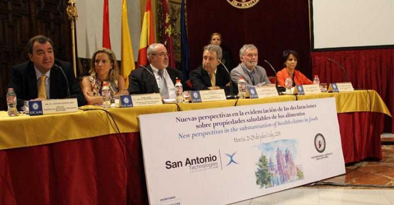 “La sociedad demanda en la actualidad alimentos saludables y seguros desde el punto de vista sanitario“. Así de rotundo se mostró en la Universidad Católica San Antonio, el Consejero de Agricultura de la Comunidad de Murcia, Antonio Cerdá, durante la inauguración del Summer Course Internacional `Nuevas perspectivas en la evidenciación de las declaraciones sobre propiedades saludables de los alimentos´. Las Jornadas, organizadas por los Departamentos de Tecnología de los Alimentos y Nutrición, y por el Grado en Derecho de la UCAM, se desarrollarán en Los Jerónimos del 21 al 23 de julio. Cabe destacar en el marco del simposio, la presentación del Instituto de Innovación Alimentaria de la UCAM, que dirigirá el gerente de Food Consulting, y director de San Antonio Technologies, Javier Morán.