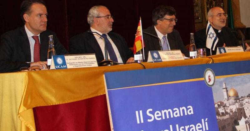 La Universidad Católica San Antonio (UCAM) inauguró el pasado martes 15 de mayo la II Semana Cultural Israelí que se desarrollará en el Templo de los Jerónimos hasta el próximo viernes 18 de mayo. En el acto de apertura intervinieron el presidente de la Católica, José Luis Mendoza, junto al embajador de Israel en España, Alon Bar, así como otras autoridades académicas y diplomáticas.