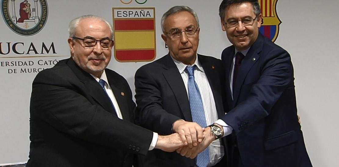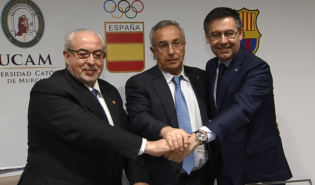 El acuerdo fue firmado por los presidentes de las tres entidades: Josep María Bartomeu (FC Barcelona), Alejandro Blanco (Comité Olímpico Español) y José Luis Mendoza (Universidad Católica de Murcia)