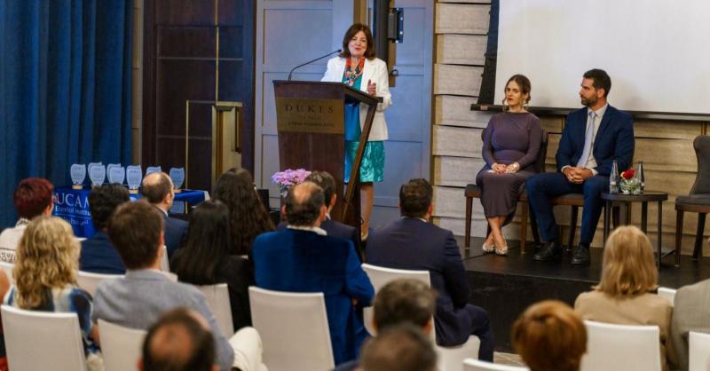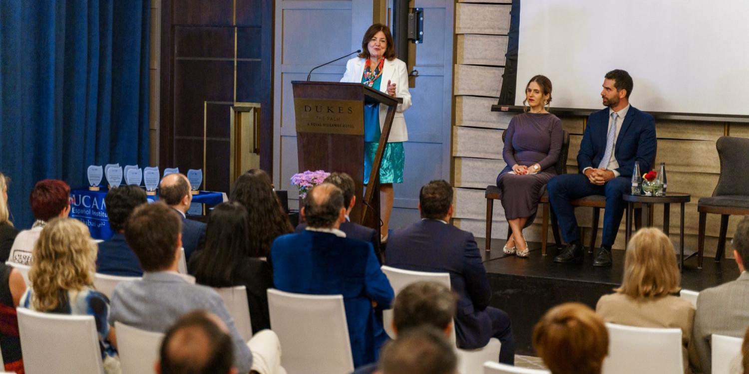 Uno de los momentos importantes del acto ha sido la entrega de reconocimientos a instituciones que han venido colaborando con UCAM Español Institute Dubai a lo largo de esta década, como la Embajada de España, la Asociación de Profesores de Español, el Spanish Business Council, el periódico El Correo del Golfo o el Consejo de Residentes Españoles en EAU.