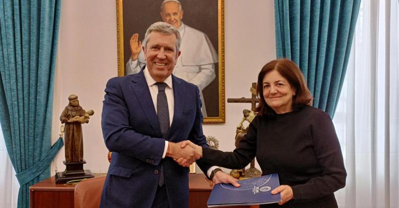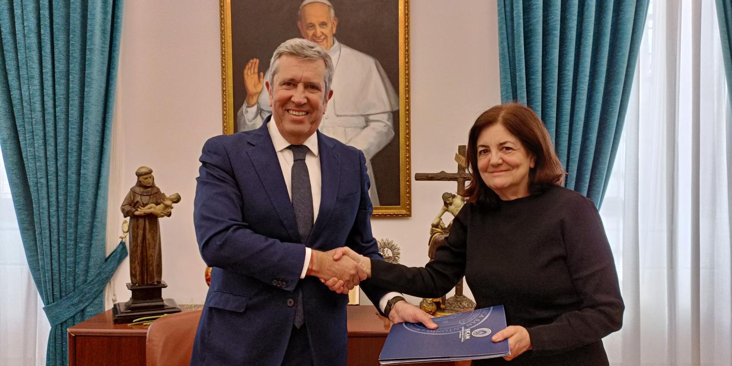 María Dolores García, presidenta de la Universidad Católica, y Javier Collado, director general de la Fundación INCYDE, firman también el convenio para crear la planta piloto de procesado preindustrial alimentario que complementará los servicios a empresas de UCAM HiTech
