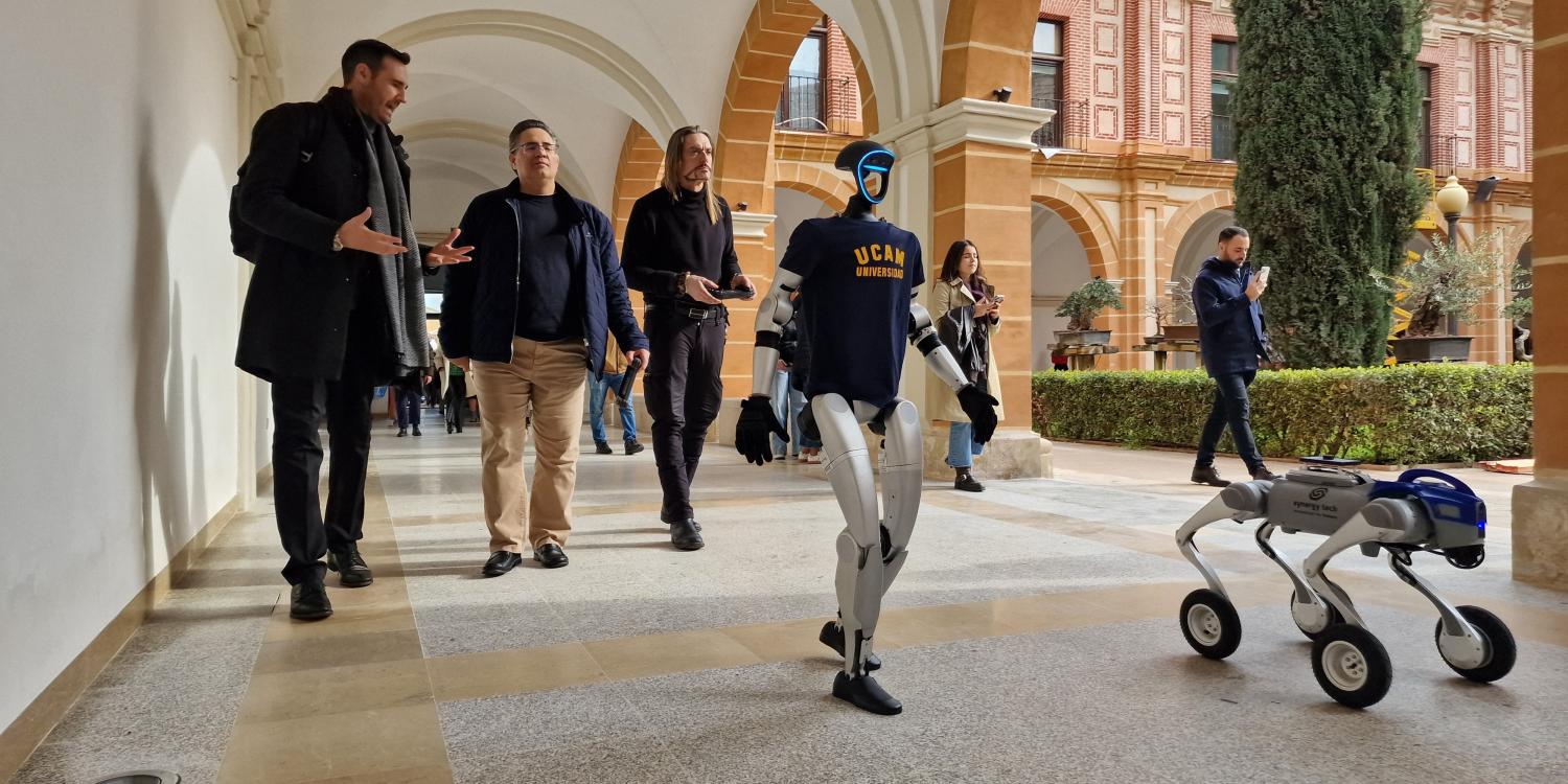 La Universidad Católica de Murcia continúa avanzando en la incorporación de las tecnologías más innovadoras a su oferta educativa y en sus proyectos de investigación. En esta ocasión, el Campus de Los Jerónimos ha recibido la visita de Synergy Tech, empresa especializada en robótica, que presentó dos de los modelos más avanzados con los que cuenta: un robot humanoide y otro cuadrúpedo.