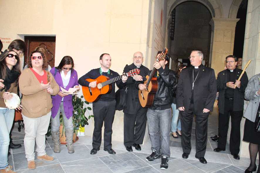 La Universidad Católica San Antonio de Murcia (UCAM) ha felicitado esta mañana la Navidad al obispo de la diócesis de Cartagena, José Manuel Lorca Planes, y la sociedad murciana, a través de villancicos. Personal y estudiantes de la universidad han alegrado esta mañana la Plaza Cardenal Belluga de Murcia con sus cánticos, y con la entrega de estrellas navideñas a los viandantes.
