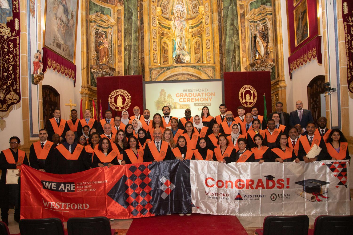 Un total de 80 alumnos de los centros de Educación Superior Westford University College y UniAthena han recibido sus diplomas acreditativos en MBA, Executive MBA, MPhil y DBA en un acto celebrado en el Campus de Los Jerónimos