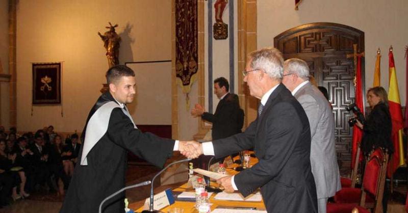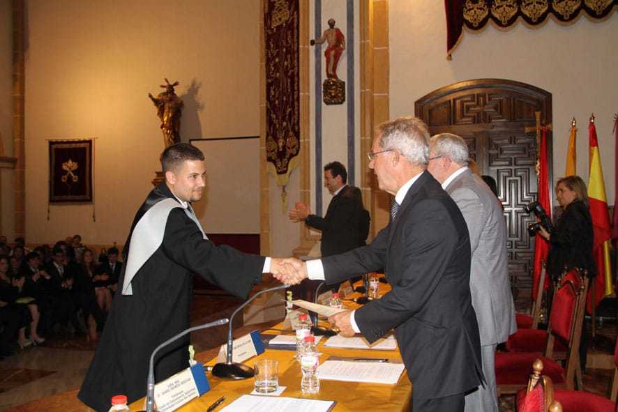 El Templo del Monasterio de Los Jerónimos acogió el pasado viernes 18 de mayo el acto de Imposición de Becas y Entrega de Diplomas a los alumnos de la Primera Promoción de los Grados en Comunicación Audiovisual, Periodismo y Publicidad y Relaciones Públicas de la Universidad Católica San Antonio de Murcia (UCAM). Cabe destacar que el periodista José Ángel de la Casa actuó como padrino de los nuevos graduados. El presidente de la UCAM, José Luis Mendoza presidió el acto acompañado por la rectora de la Universidad, Josefina García; el decano de la Facultad de Ciencias Sociales y de la Comunicación, Pablo Blesa; la vicedecana de Comunicación Audiovisual, Isabel Sarabia Andúgar; el vicedecano de Publicidad y RR.PP., Jesús Tomás Martínez Sánchez; y la subdirectora de Periodismo, Beatriz Correyero Ruiz. Durante la ceremonia, los estudiantes Daniel Cano Alarcón –Comunicación Audiovisual-, Nuria Monsó Tarancón (Periodismo) y Amparo Nicolás Almagro (Publicidad y RR.PP), recogieron los premios al mejor expediente académico del curso 2010/2011.