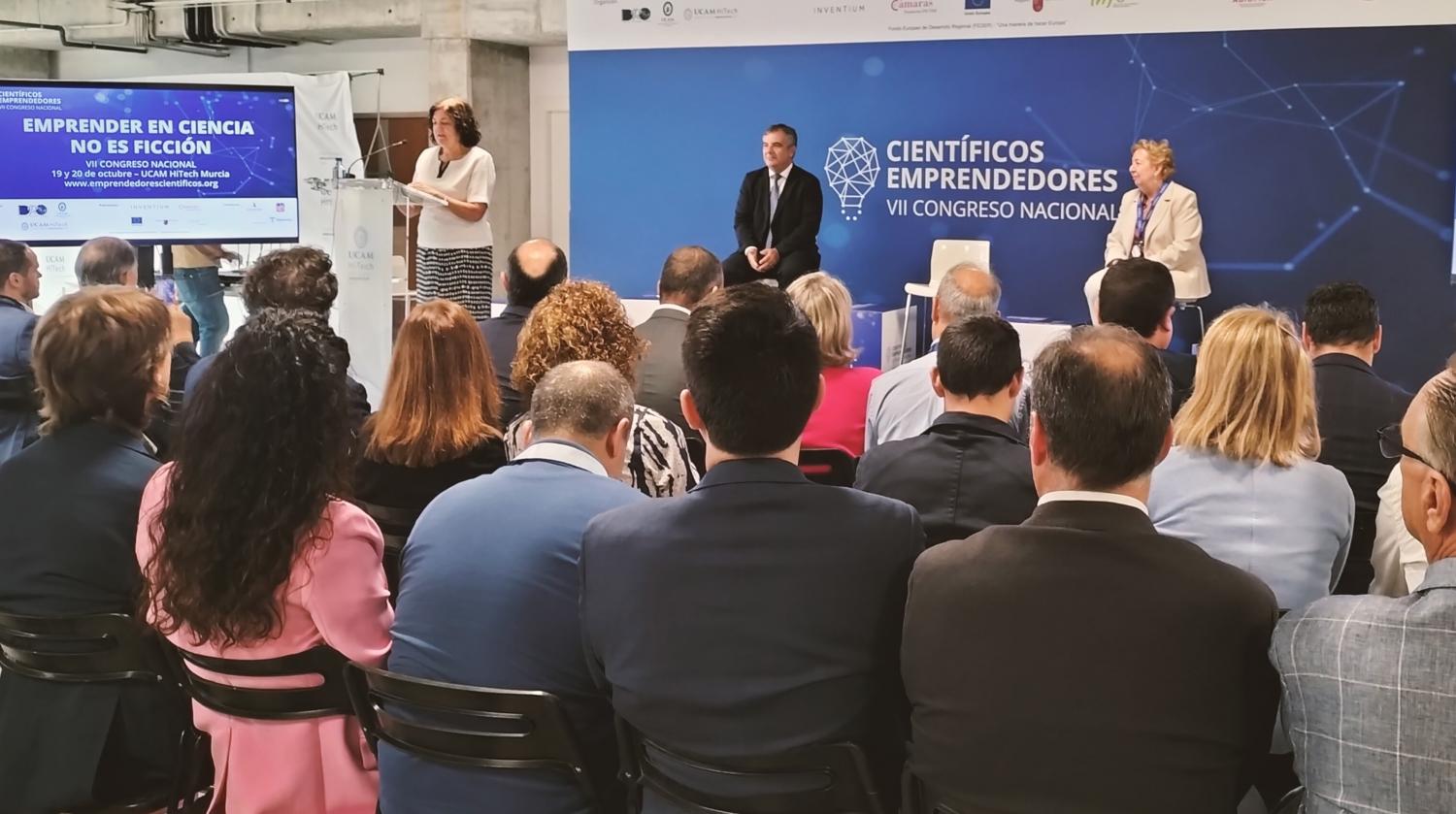 'Emprender en ciencia no es ficción’ es el lema escogido para el VII Congreso Nacional de Científicos Emprendedores que se ha inaugurado esta mañana en el centro de innovación y aceleración empresarial UCAM HiTech. Es la primera vez que se celebra en Murcia este evento, organizado por la Fundación Damián Rodríguez Olivares y la Universidad Católica de Murcia, convirtiendo a la ciudad en el mayor punto de encuentro de científicos emprendedores y su ecosistema de innovación en España. A él asisten unas 300 personas, representantes de 16 universidades españolas, y más de 30 start ups científico-tecnológicas. Lo novedoso del evento es que los participantes, además de escuchar el testimonio de investigadores que ya han emprendido y de expertos en trasferencia tecnológica, mantienen reuniones de trabajo con expertos del ecosistema.