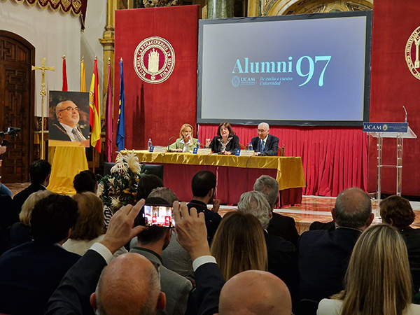 José Luis Mendoza, fundador de la UCAM y su presidente hasta que falleciera el pasado mes de enero, los llamaba ‘alumnos fundadores’. Era muy consciente de que la decisión que tomaron en 1997, ellos y sus familias, de matricularse en la naciente Universidad, fue crucial para el propio nacimiento de la institución. Por eso quiso hacerles un homenaje en el marco de la celebración del 25 aniversario de la UCAM. Su enfermedad aplazó el acto y su pérdida impidió que se reencontrara con ellos. Pero su esposa y actual presidenta, María Dolores García, ha cumplido con esa voluntad, y hoy se ha celebrado el deseado y emocionante reconocimiento.