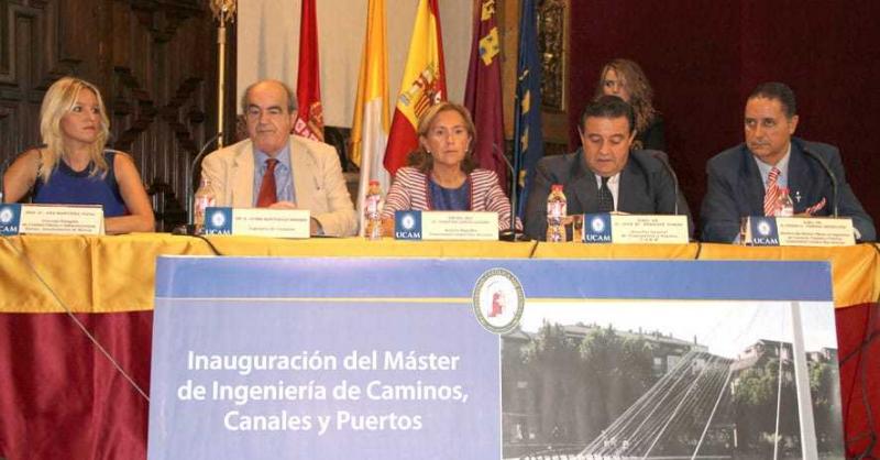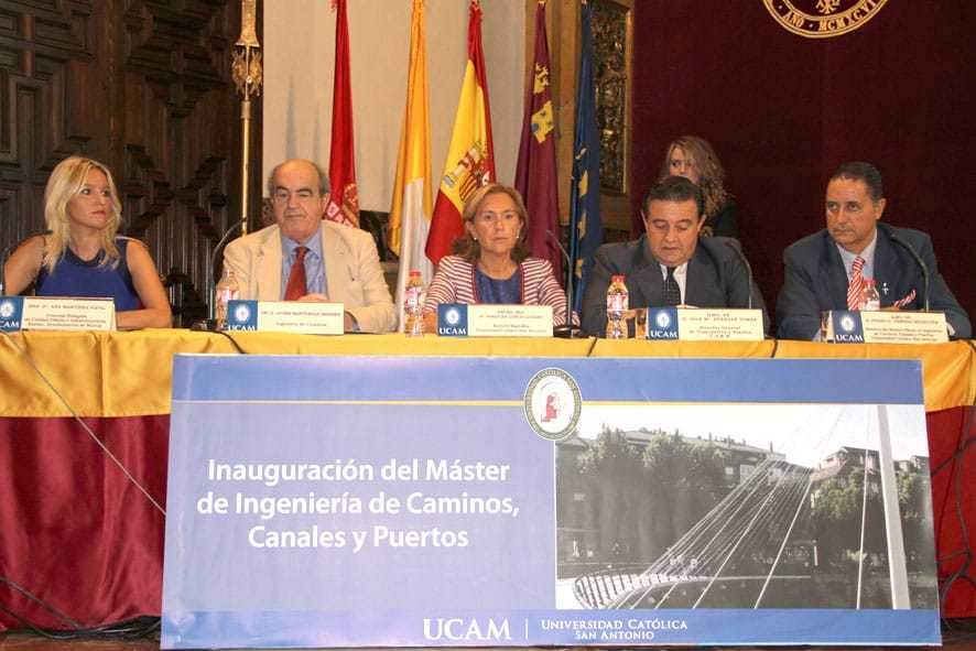 La Universidad Católica San Antonio de Murcia (UCAM) inauguró el pasado 6 de octubre, el Máster Oficial en Ingeniería de Caminos, Canales y Puertos en el transcurso de un acto en el que intervinieron la rectora de la UCAM, Josefina García; el vicedecano del Grado en Ingeniería Civil, y director del Máster, Pedro de los Santos Jiménez Meseguer; el director General de Transportes y Puertos de la CARM, José María Bernabé; la concejal de Infraestructuras de Murcia, Ana Martínez Vidal y el alcalde de la ciudad, Miguel Ángel Cámara, que no pudo asistir pero que mandó un videomensaje de bienvenida a los estudiantes.