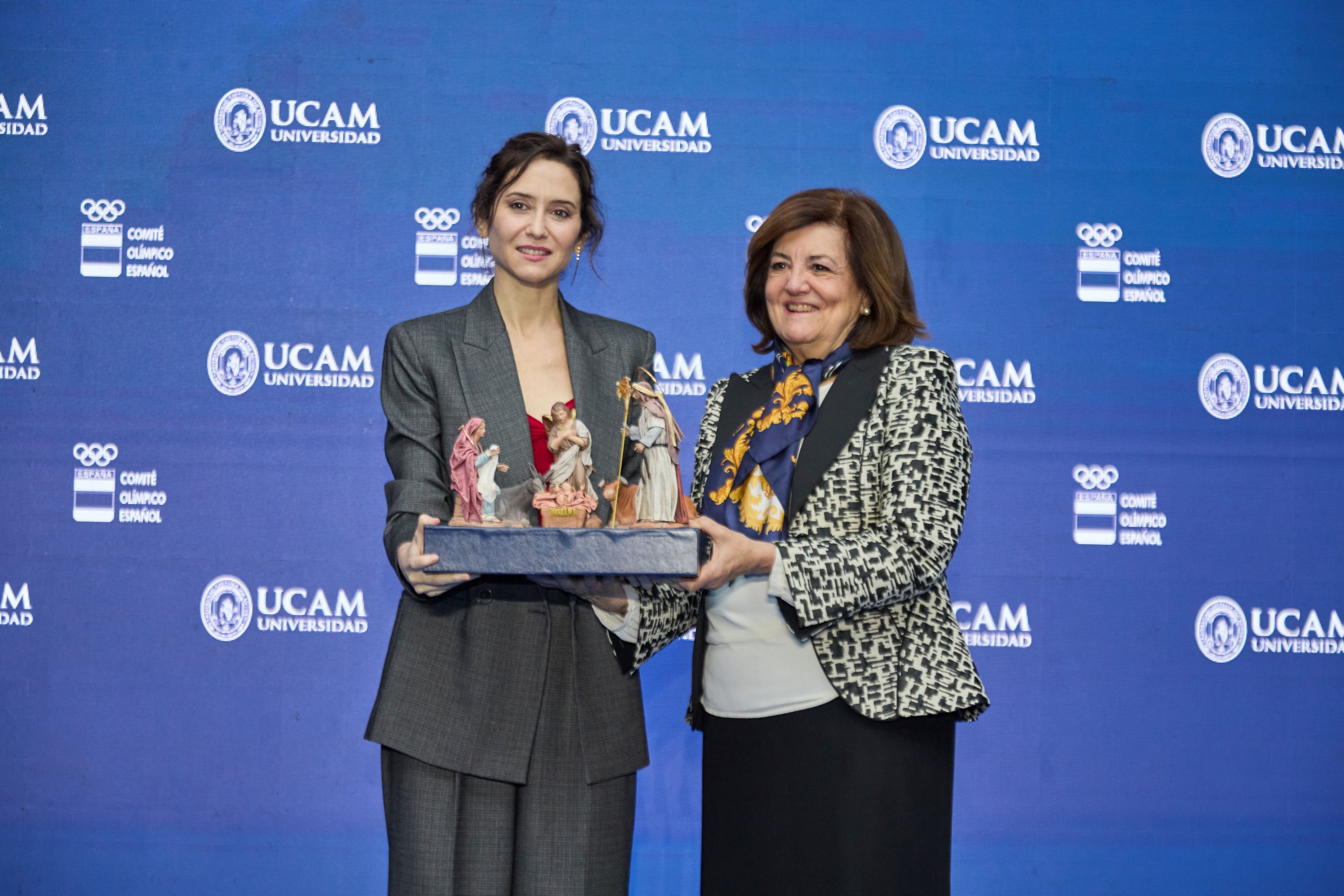 Previamente a la clausura del acto, la presidenta de la UCAM ha hecho entrega a Díaz Ayuso de un obsequio tradicional murciano: un belén del artesano Griñán. Por su parte, los deportistas olímpicos presentes le regalaron una equipación completa de la UCAM. El acto, marcado por un clima celebración tras años de intenso trabajo, culminó con un vino español.