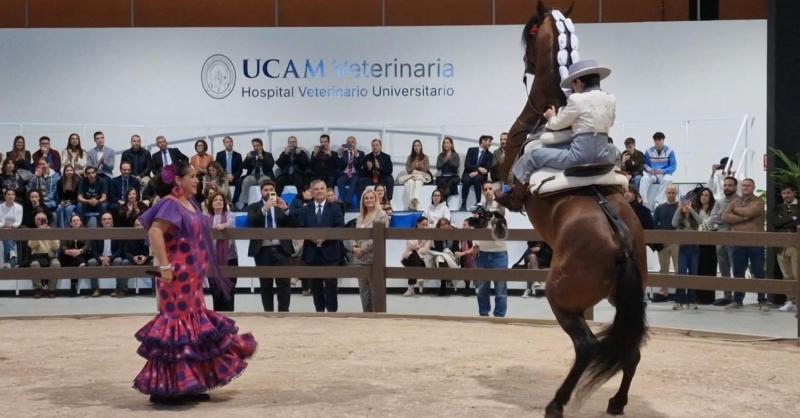 En el acto han participado María Dolores García, presidenta de la UCAM y Fernando López Miras, presidente de la Región de Murcia, acompañados del consejero de Universidades, Juan María Vázquez, la rectora de la Universidad, Josefina García, la vicedecana del Grado en Veterinaria, Llanos Martínez, directivos de la Universidad y representantes de numerosas entidades relacionadas con el sector.