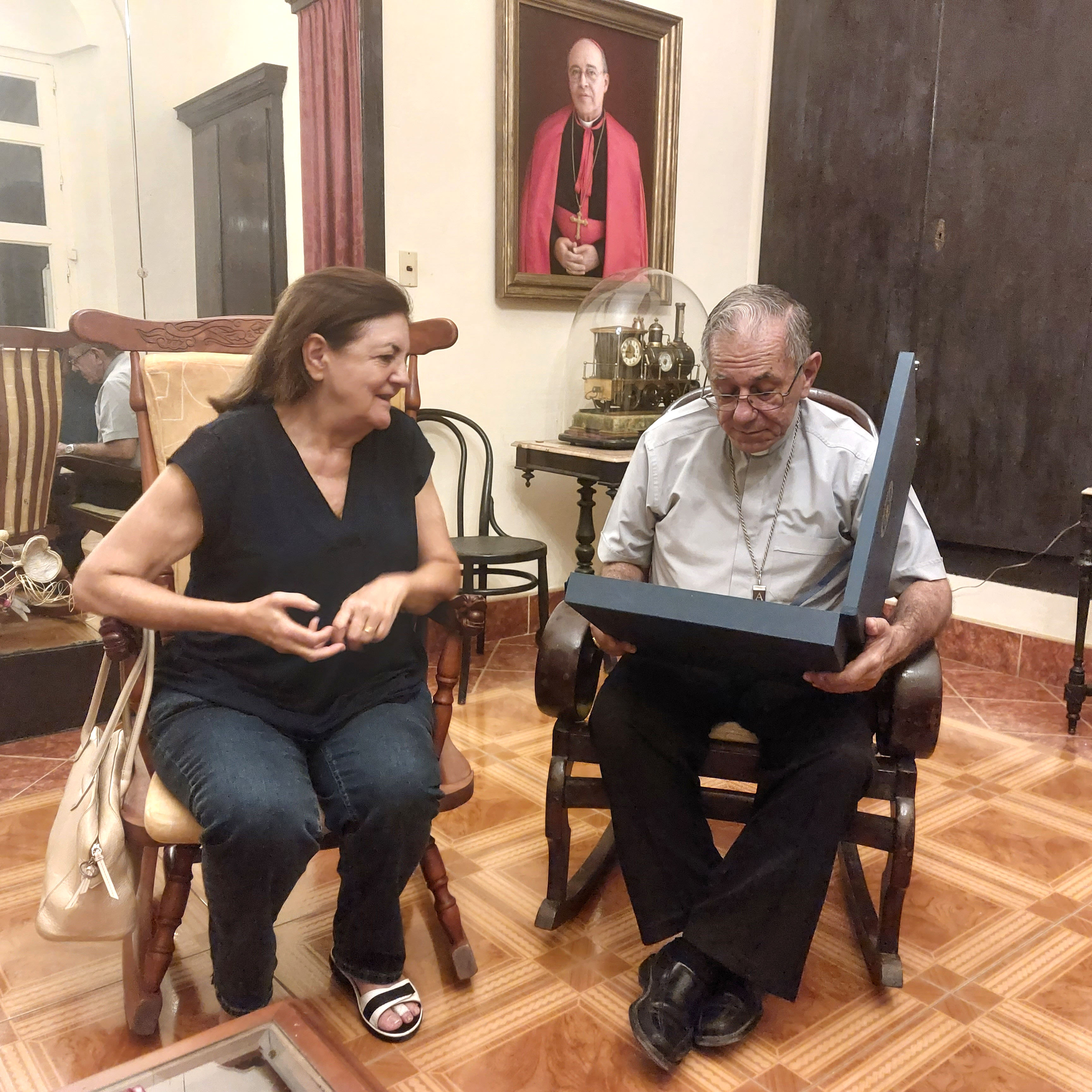 Tras la celebración de la misa, la delegación de la UCAM mantuvo un afectuoso encuentro con Juan de la Caridad García, arzobispo de la Arquidiócesis de San Cristóbal de La Habana, con quien, según destacó la presidenta de la UCAM, “tenemos una muy buena relación; es un hombre, un pastor, absolutamente entregado a sus diocesanos”.