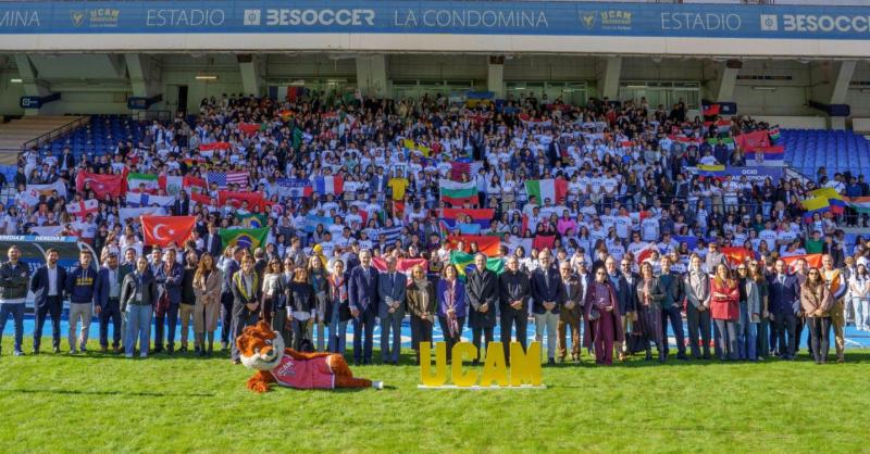 El Estadio BeSoccer La Condomina se ha llenado de color, idiomas y banderas de los cinco continentes en una jornada que marca el inicio del curso académico para los nuevos estudiantes internacionales de la UCAM. Procedentes de más de noventa países, los mil alumnos han vivido un encuentro de integración y convivencia que refleja el dinamismo y la vocación global de la Universidad Católica de Murcia.