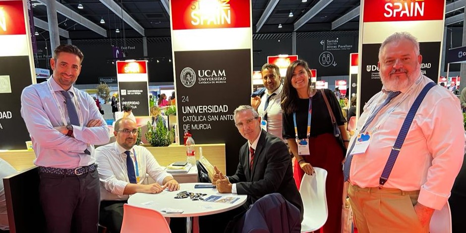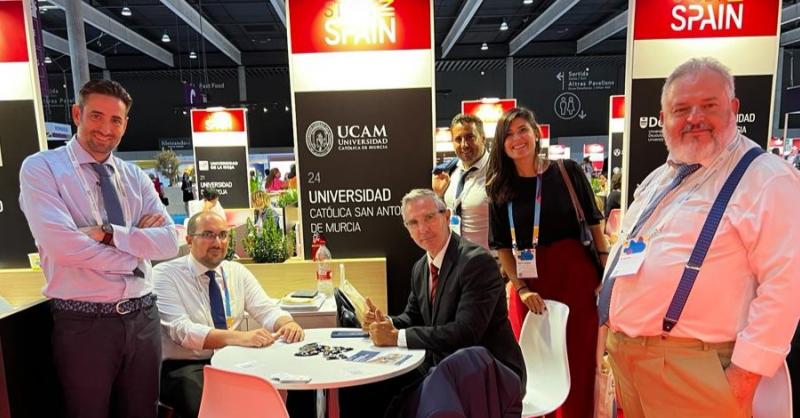 La delegación de la Universidad ha estado formada por Pablo Blesa, vicerrector de Relaciones Internacionales y Comunicación; José Luis Mendoza, director general de Relaciones Institucionales; Samuel Mendoza, director general de Infraestructuras y Transformación Dgital; Marco Bruno, director de Desarrollo Internacional; Ernesto García, coordinador de Partners; y Mª Amalia Oliva, International Proyect Manager. La UCAM ha tenido su presencia en el pabellón de ‘Study in Spain’, coordinado por el SEPIE (Servicio Español para la Internacionalización de la Educación).