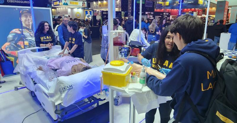 La Universidad Católica de Murcia tiene una participación muy especial este año en IFEMA, el recinto madrileño que acoge la Feria educativa Aula, ya que su stand, en el pabellón 12, pone el foco especialmente en las titulaciones que ofrecerá en su Campus de Madrid, aunque no solo, y lo hace mediante talleres prácticos, simulación clínica y las nuevas tecnologías aplicadas al aprendizaje a través de muy diversas actividades y propuestas formativas y lúdicas.