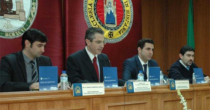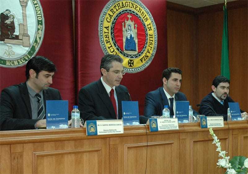 La UCAM presentó recientemente la Guía de Expertos que ha elaborado la Dirección de Comunicación de la institución. En el acto de presentación intervinieron el vicerrector de Relaciones Internacionales y Comunicación, Pablo Blesa, junto a otros miembros de dicho vicerrectorado. También asistieron diversas autoridades y miembros de la comunidad universitaria. Durante su intervención, el vicerrector de Relaciones Internacionales y Comunicación, Pablo Blesa, explicó que “la guía constituye un instrumento creado por la Dirección de Comunicación para acercar el caudal experto investigador y docente de la UCAM a la sociedad, utilizando como nexo a los medios de comunicación social. Es un servicio a los medios y a la sociedad en su conjunto”.Por su parte, el Director de Comunicación, José Luis Mendoza García, incidió en que “mediante la guía pretendemos sensibilizaros de la importancia de la comunicación universitaria. Por ello se ha creado esta guía, dirigida a la propia UCAM a nivel interno, a los medios de comunicación, y a las empresas”.El jefe del Gabinete de Comunicación de la UCAM, Samuel Linares, destacó “la gran aceptación que está teniendo la Guía de Expertos en el ámbito regional y nacional”, e incidió en que "muy pocas universidades españolas disponen de esta herramienta de comunicación”.Por otra parte, el director Multimedia, Samuel Mendoza, hizo referencia al Plan Estratégico de Comunicación (PEC) de la UCAM en el que se está trabajando para su próxima presentación. Según Samuel Mendoza dicho Plan Estratégico constituye “una brújula que conduce al éxito, y que trata de transmitir la imagen de la Universidad a la sociedad”.La Guía de Expertos de la UCAM puede consultarse en www.ucam.edu/expertos