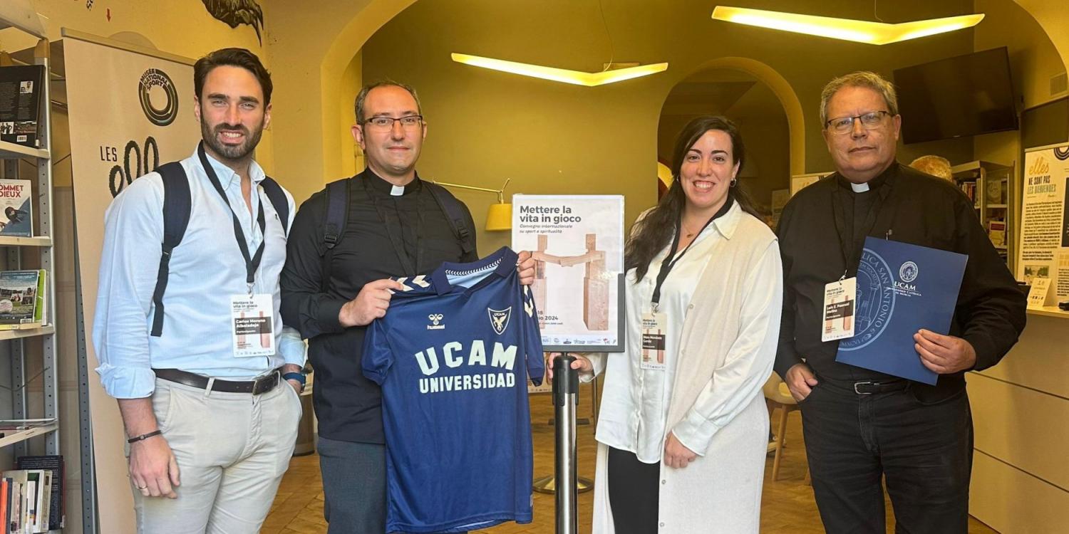 La Universidad Católica de Murcia estuvo presente en el Congreso sobre Espiritualidad y Deporte, titulado 'Pon tu vida en juego', que se celebró en Roma organizado por la Embajada de Francia ante la Santa Sede y el 'Dicasterio Vaticano para la Cultura y la Evangelización'. Los representantes de la UCAM fueron María Mendoza, miembro del Patronato de la Fundación Universitaria San Antonio; Felipe Tomás Valero, capellán del UCAM Murcia CF; Carlos Moreno, director deportivo de la cantera de fútbol; y Luis Emilio Pascual, capellán mayor de la UCAM y del equipo de baloncesto.