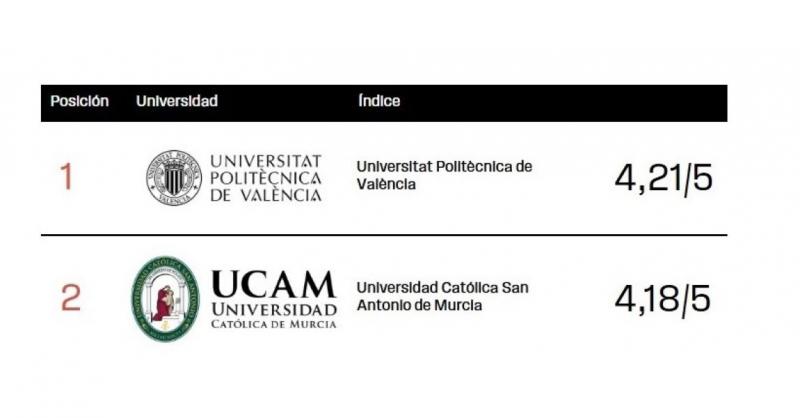La UCAM, entre las tres universidades mejor valoradas de España por sus estudiantes