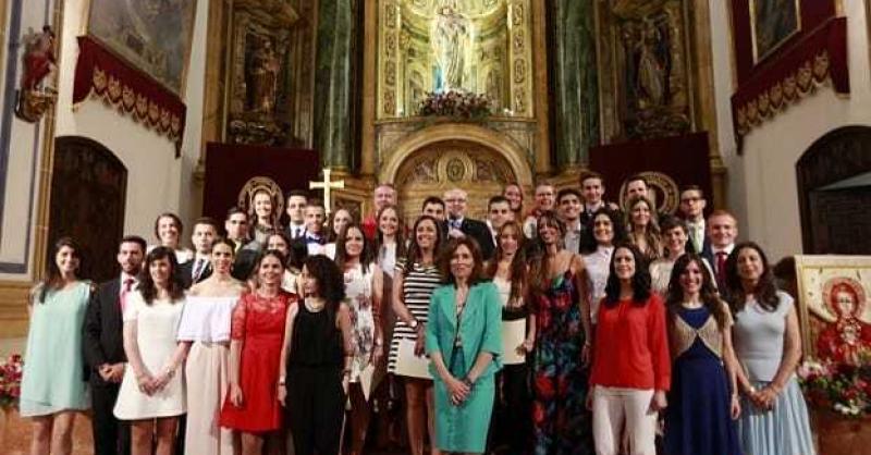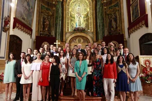 Un amplio grupo de estudiantes de la Universidad Católica de Murcia, pertenecientes a varias titulaciones, han recibido hoy el Sacramento de la Confirmación en el templo del Monasterio de Los Jerónimos. Entre los alumnos que han querido reafirmarse en su fe católica, se encontraba la nadadora Mireia Belmonte, estudiante del Grado en Publicidad y Relaciones Públicas, que ha estado apadrinada por el presidente de la UCAM, José Luis Mendoza y su esposa María Dolores García.