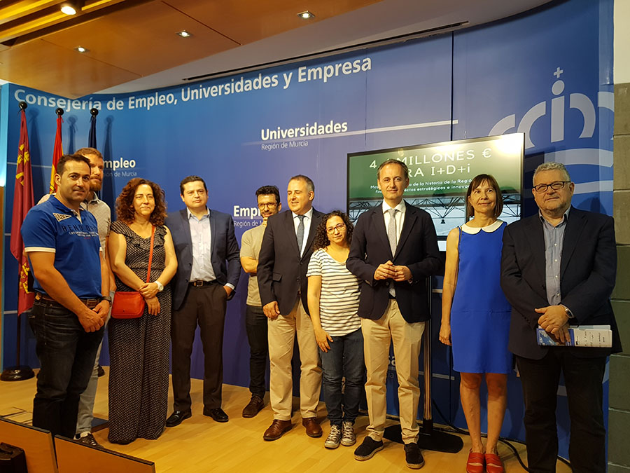 El consejero de Empleo, Empresa, Universidades y Medio Ambiente, Javier Celdrán, ha destacado que este año se duplican los fondos de esta iniciativa (de 1.985.775 a 4.428.960 euros), que tiene como objetivo promover la I+D+i con proyectos estratégicos altamente innovadores para fomentar la transferencia cooperativa y multidisciplinar entre todos los agentes públicos y privados (centros de investigación, tecnológicos y universidades) directamente con las empresas.