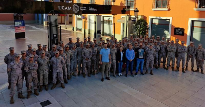 Sesenta alumnos de la Escuela de Infantería de Marina General Albacete y Fuster de Cartagena han participado en la primera jornada de un proyecto conjunto con el Centro de Investigación en Alto Rendimiento Deportivo de la Universidad Católica de Murcia, reconocida a nivel internacional como ‘la Universidad del Deporte’