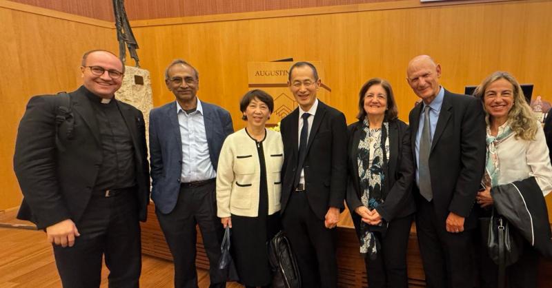 María Dolores García, presidenta de la Universidad Católica de Murcia, se desplazó a Roma para asistir a este acto, donde mantuvo un afectuoso encuentro con los tres científicos, así como con el sacerdote Alberto Carrara, presidente del Instituto Internacional de Neurobioética.