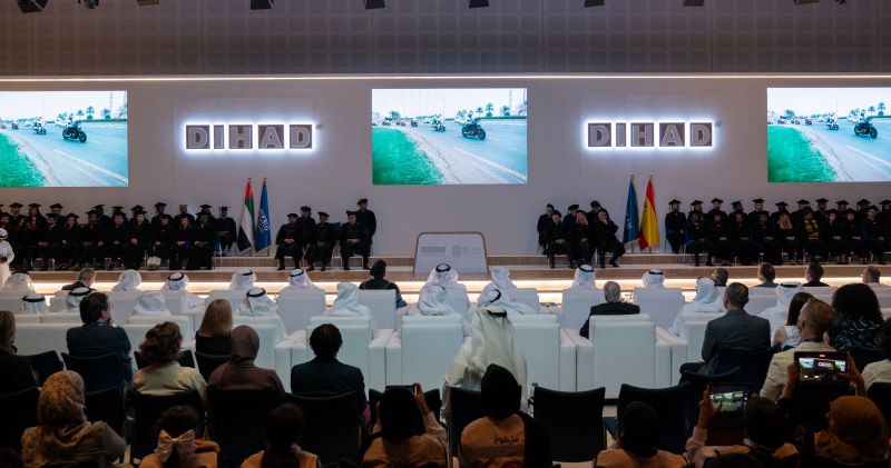 El acto fue presidido por Su Alteza Real Saif bin Zayed Al Nahyan, viceprimer ministro y ministro del Interior de Emiratos Árabes Unidos; Abdulsalam AlMadani, presidente de INDEX Holding y de la Fundación DIHAD, y José Luis Mendoza García, director general de Relaciones Institucionales de la UCAM, quien estuvo acompañado por Gonzalo Wandosell, decano de la Facultad de Economía y Empresa de la UCAM y del DIHAD Humanitarian College.