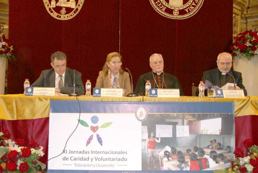 El cardenal Carlos Amigo afirmó que educar en la caridad es ayudar al hombre a ser él mismo, y destacó el concepto educación completa “en las que se ayuda a las personas a ser ellas mismas”. Además, durante su ponencia resaltó el derecho del hombre a poder ayudar a la gente. Por su parte, el director General de Asuntos Sociales, Igualdad e Inmigración de la Comunidad Autónoma de la Región de Murcia, Leopoldo Navarro, matizó las Jornadas como una cita obligada “que permite reflexionar sobre política de voluntariado, y muestra a la sociedad en general cómo es el voluntariado”. Del mismo modo, Leopoldo Navarro señaló también como parte del voluntariado en las empresas, los programas de responsabilidad social corporativa. El director del Instituto Internacional de Caridad y Voluntariado, Antonio Alcaraz, destacó algunos de los diversos proyectos de voluntariado con los que cuenta la UCAM, como el proyecto desarrollado por la institución académica en Perú. Durante la inauguración, la rectora de la Universidad Católica de Murcia, Josefina García, reseñó el lema elegido para estas XI Jornadas y ha resaltado la necesidad de que la educación en todas sus etapas recoja aspectos relacionados con la caridad y el voluntariado.